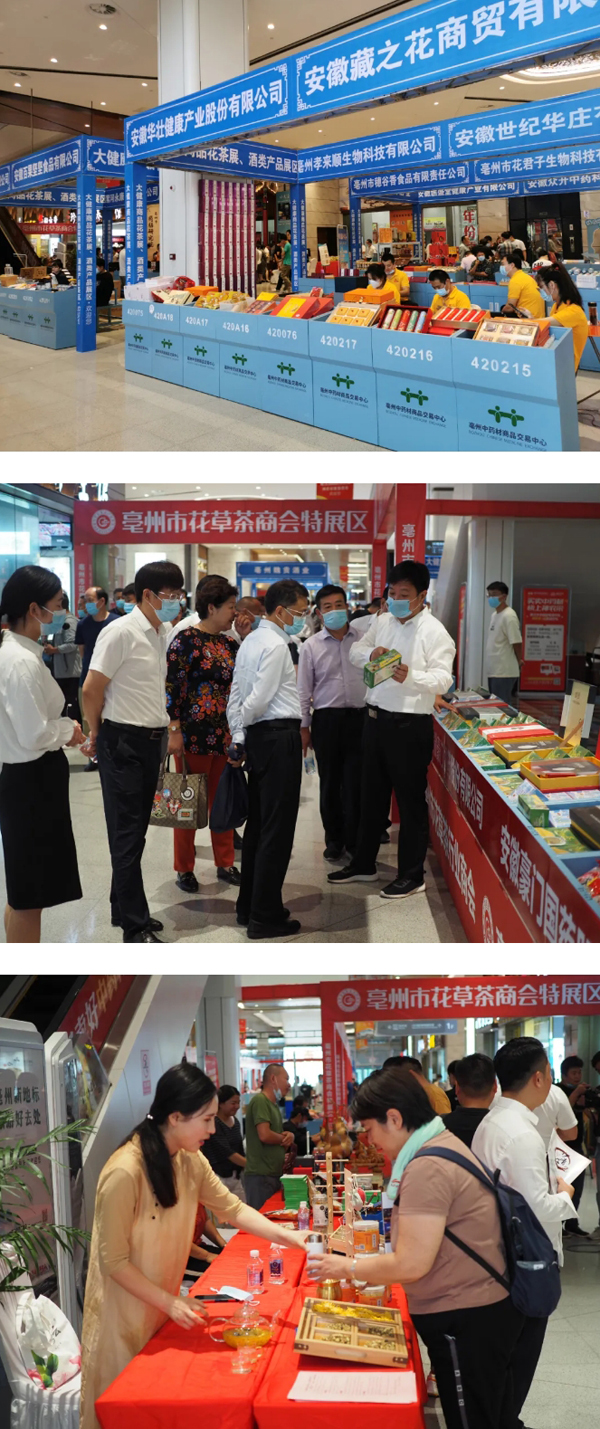 展會現(xiàn)場一樓有珍寶島集團(tuán)、古井集團(tuán)、亳州市花草茶商會以及古井鎮(zhèn)名優(yōu)產(chǎn)品展、文旅集團(tuán)文創(chuàng)產(chǎn)品展、亳州市藥膳協(xié)會藥膳展、康養(yǎng)食品花茶展,二樓為花茶文化藝術(shù)空間及部分花茶展。