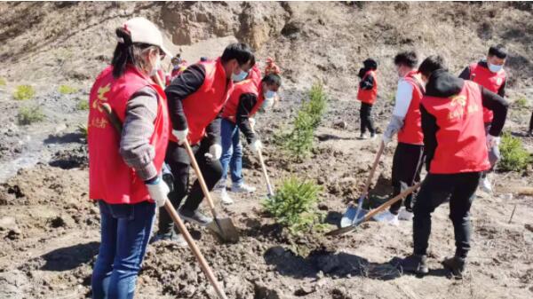 志愿者們參觀了“保護(hù)生態(tài)環(huán)境主題展板”,沿著晨光路進(jìn)行“健康徒步”,最后來(lái)到虎林水庫(kù)山上開(kāi)始綠化植樹(shù)。大家有的拿樹(shù)苗,有的挖坑,有的培土,忙碌的場(chǎng)面,熱火朝天。一個(gè)個(gè)鮮紅的身影,一顆顆翠綠的樹(shù)苗,一面面飄揚(yáng)的旗幟,在這片空曠的土地上編織出一幅美麗的畫(huà)卷。